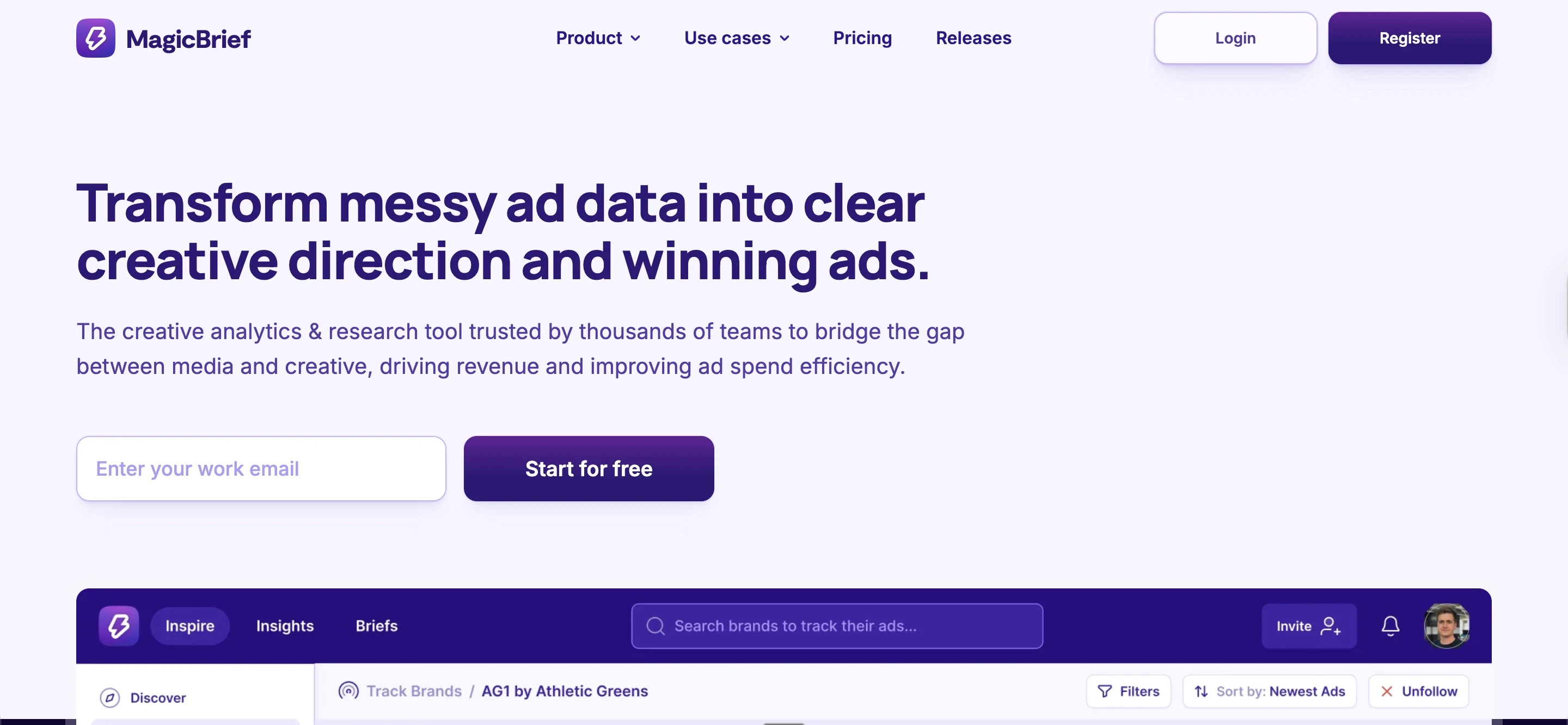 Agencies use Magic Brief to build inspiration libraries and brief workflows. The tagging is solid for static and short video ads, and the Chrome extension for saving competitor ads is well loved.